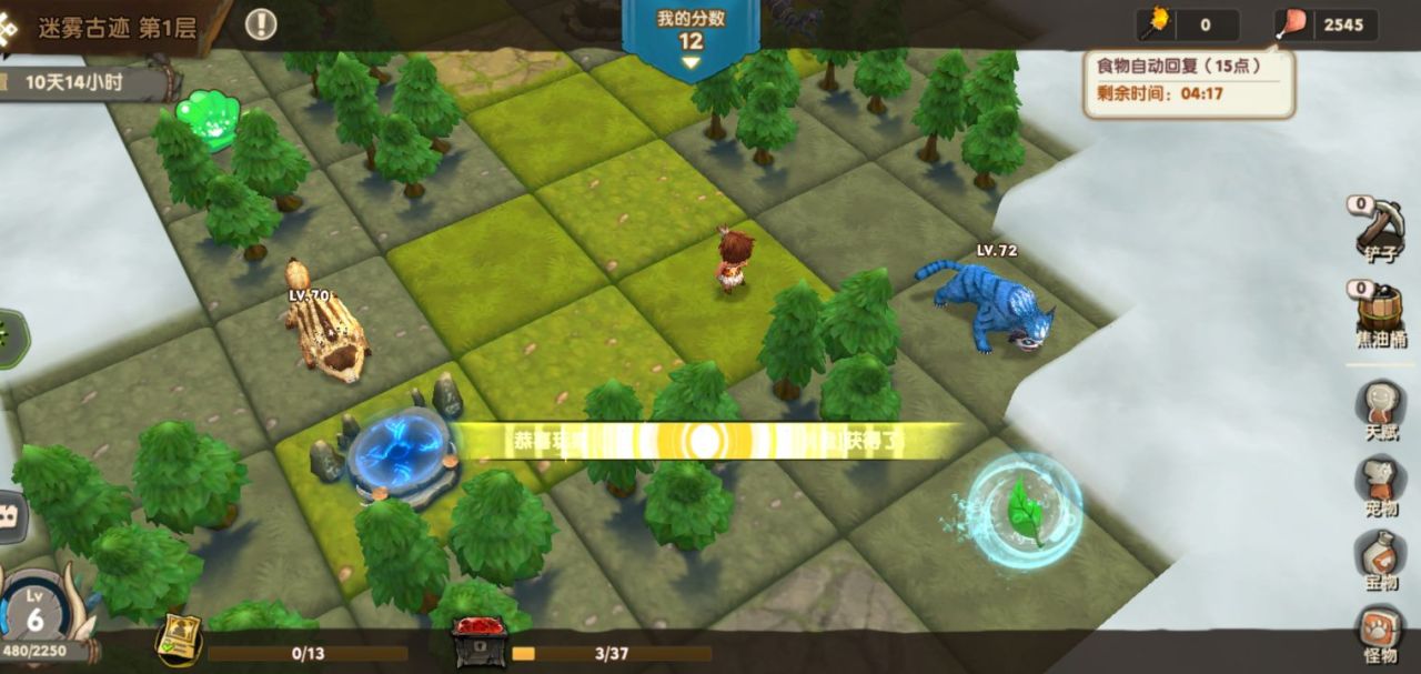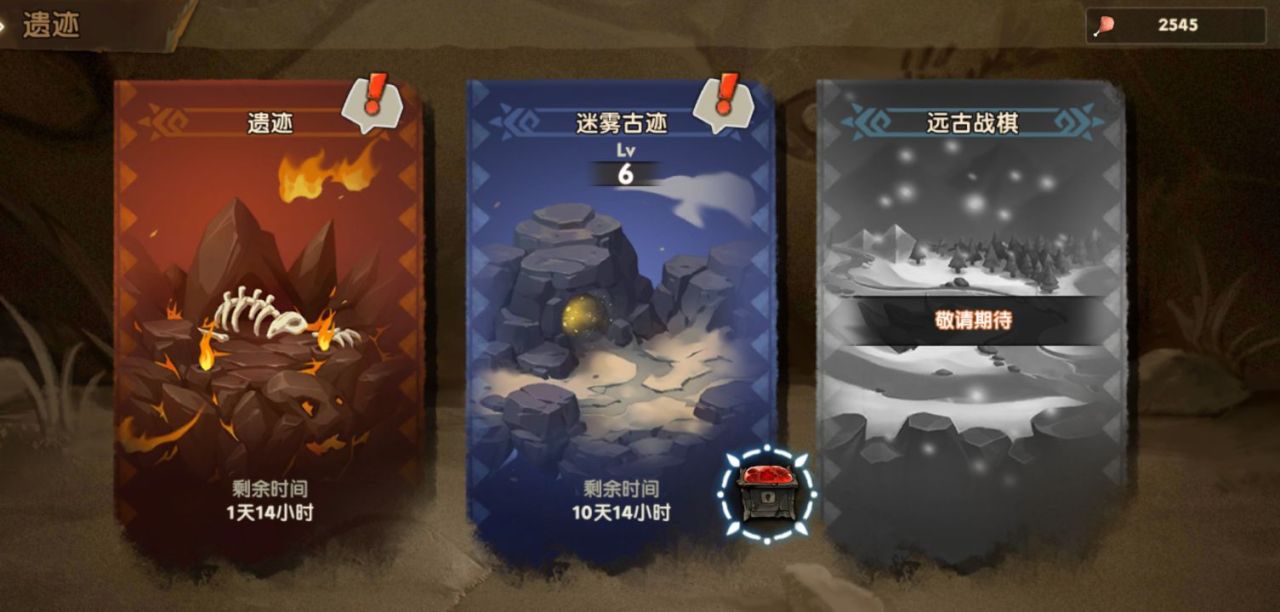 迷雾古迹是这款游戏的一个探索玩法,探索的地方越多,可以获取的资源也就越多,主要是操纵自己的角色,在整个地图中通过各种障碍物来解锁更多的奖励区域,迷雾古迹有固定的探索周期,一般都是17天左右,只有一个地图,在这个任务中最重要的就是食物,没有食物自己操纵的角色就无法进行移动,或者是挑战其他的怪物,而食物只能通过时间来获取。