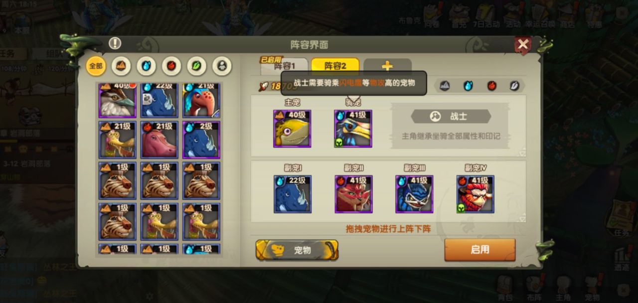 攻守兼备搭配流:由于在游戏中每局可以上阵六个宠物,这些宠物在通关前期副本的时候,都是需要一定的特点,有的关卡需要玩家们有一定的回复型宠物,而有的关卡则直接需要强力输出秒掉就可以。而攻守兼备搭配方法则需要斑马象,犀牛鲸鱼,凤尾鹰,考拉狮,猫头熊,这套阵容的主要优势搭配就在于猫头熊的群体输出可以为整个队伍打出强力的伤害铺垫,犀牛精作为sr级别最强奶位,可以治疗到最多四个,队友十分厉害,当然整个队伍中不搭配上收割的宠物是不可以的,凤尾鹰的群体伤害可以完美的弥补猫头熊的伤害不足,而斑马象他的坦度十分厉害,并且技能自带嘲讽,还可以吸引火力。