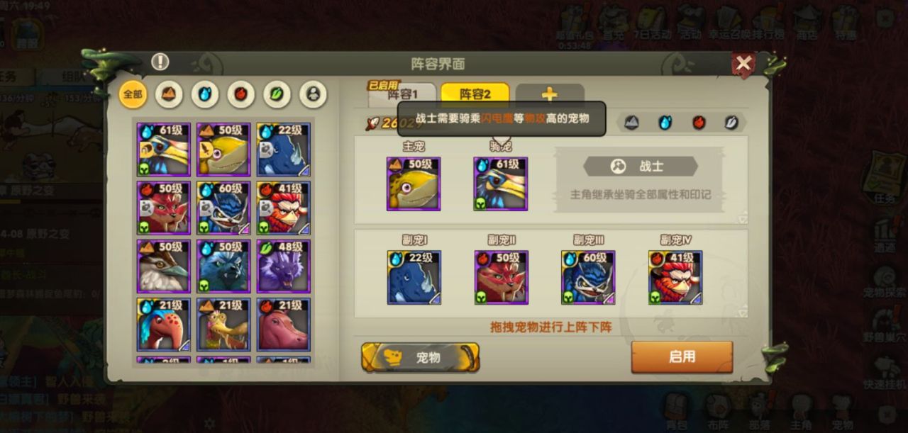 这一关敌方的野兽分别为鳄犬,铁背河马,犀牛龟,霸王鹰,灯笼蜥以及铁背河马,防御力是比较厉害的,一般玩家们来到这一关的话,都已经获得了六个sr级别的宠物,并且等级都应该在30级到40级左右,意思就是说,我们必须在整个阵容中,安排一个可以给我们进行治疗的宠物,比如说豺面狐或者犀牛鲸,否则的话,是很难通关的。