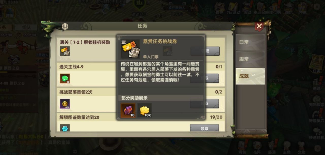 悬赏任务挑战券必须在玩家们通过主线任务关卡7-2之后解锁,超强挂机奖励,也就是说在7-2关卡之前,玩家们挂机只可以获得经验,贝壳等等,但是在通关7-2之后,再次挂机,第二天上线就可能获取一到两张这种悬赏任务挑战券了。