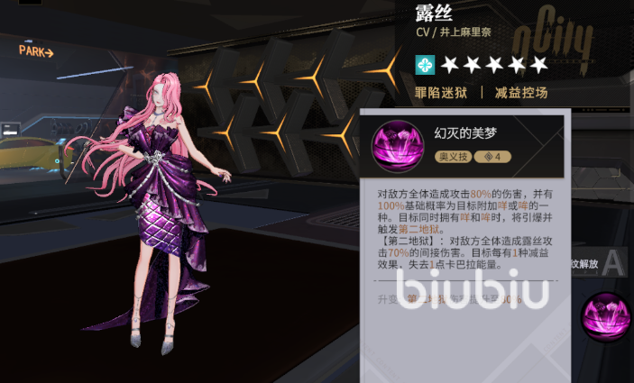 最后是露丝的奥义技——幻灭的美梦,这个技能在对地方造成伤害时也会附加“咩”或“哞”,并且直接引爆“咩”或“哞”触发“第二地狱”,对敌人造成间接伤害以及建议效果。