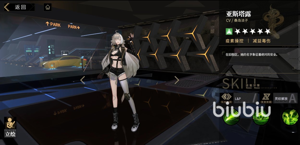 亚斯塔露,同样是五星角色,三个基础技能分别提供单体中毒,中毒传播和百分百全体中毒效果,变身后更是能对敌人在全体中毒的基础上额外添加恍惚效果。这个角色是阵容中的第二核心,其中毒伤害是非常高的,所以需要稍微培养一下。