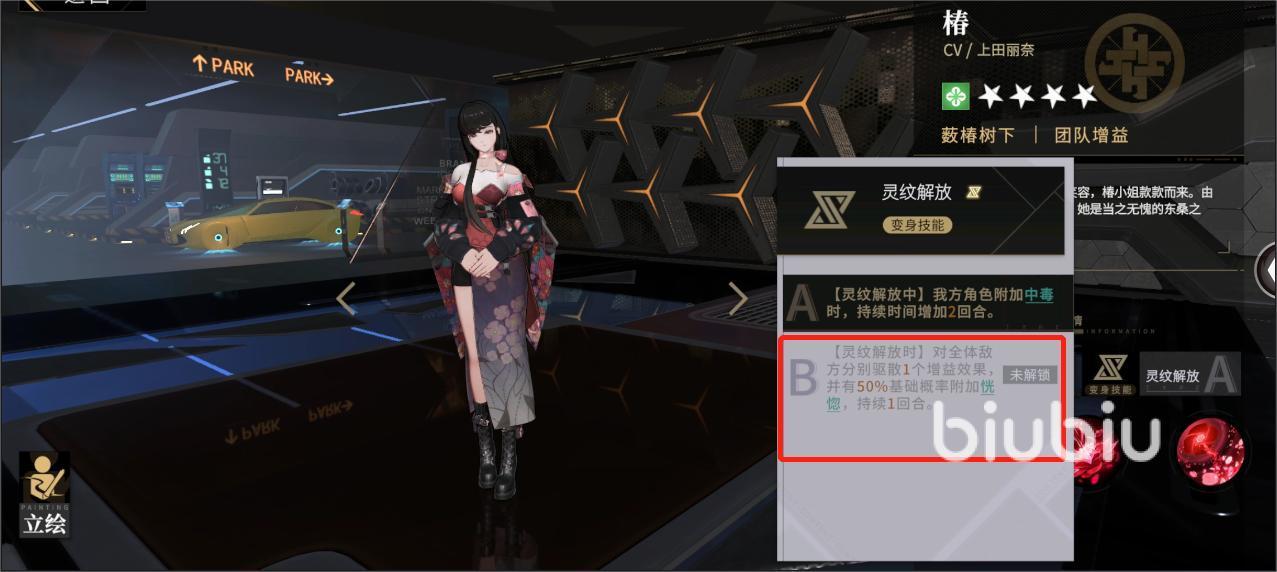 阵容中的核心就是椿,它的灵纹解放需要被解锁到B级,角色品质上属于四星也算好抽,由于解锁到b级,所以可以使用两个灵纹,分别对敌人施加中毒,驱散减益和恍惚效果!