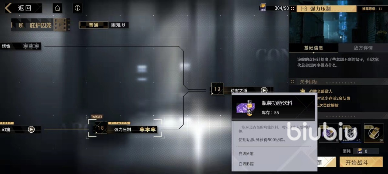 提升角色的等级则可以通过点进队伍某个队员的详情页面,然后点击升级来进行,值得一提的是这个功能需要通过第0章解锁,然后副本的战斗本身也能略微提升它们的经验条。在详情页面主动升级的话需要消耗饮料。