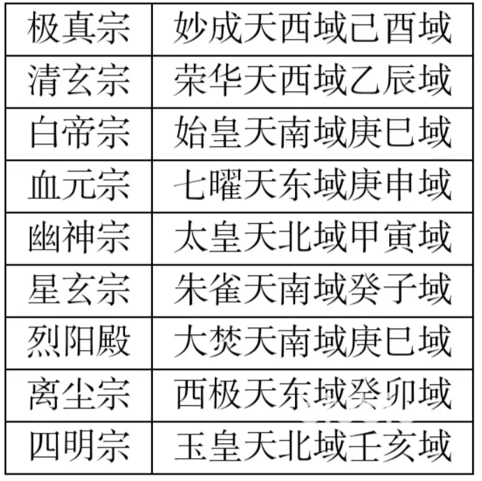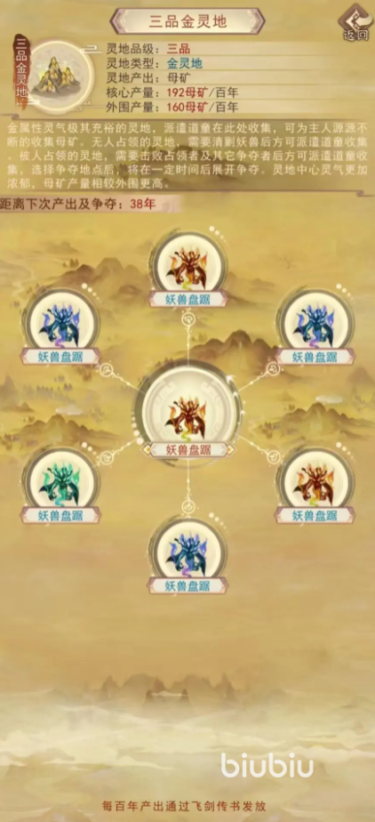 当然,各个地区可以出现的宗门也各不一样。如下图所示,玩家们可以在其当中找到自己想要的宗门遗址,来获取相应的资源产出。