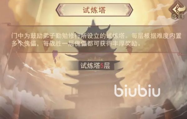 门派内的弟子想要提升强度的话,就可以来此试炼,里面有许多的傀儡,这些傀儡是按照强度区分的,试炼塔总共有五层,越往上强度越高。