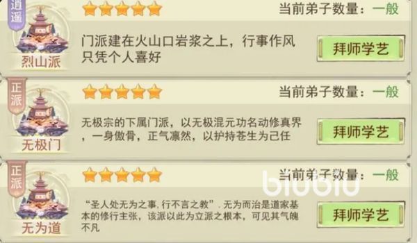 大家进入游戏之后,只要自己等级达到练气期就可以加入门派了,大家可以选择一个自己喜欢的门派加入,需要先寻得门派,然后从中挑出一个拜师学艺。在门派页面每天有十次的刷新机会,一天会刷出2到3个,凡间的门派总共有20个,预计5到6天就能全部刷出来了,到时候大家再进行选择就好了。