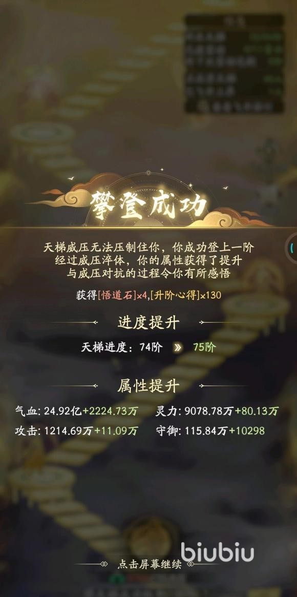 完成雷劫后会有“飞升”的按键出现,玩家直接点击飞升即可完成飞升。就算是达到看飞升之后,玩家们还是需要不断的提升下自己的攻击力和修为这样才能应对飞升后的后续任务。