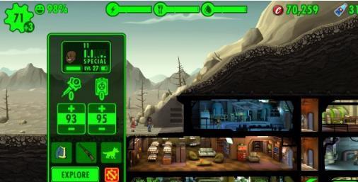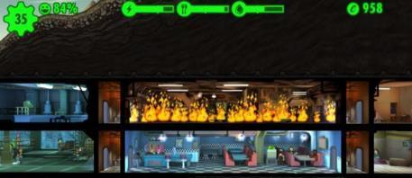 在这个游戏里一旦发生灾难,如果居民被杀死,埋掉尸体,这个居民就会永远消失,如果想要复活居民,就需要消耗很多瓶盖,这是非常麻烦的事情。但如果你不埋掉尸体,在没有复活之前,万一工人到这个房间开展工作的话,心情指数会随之降低,并且降低的速度非常快。