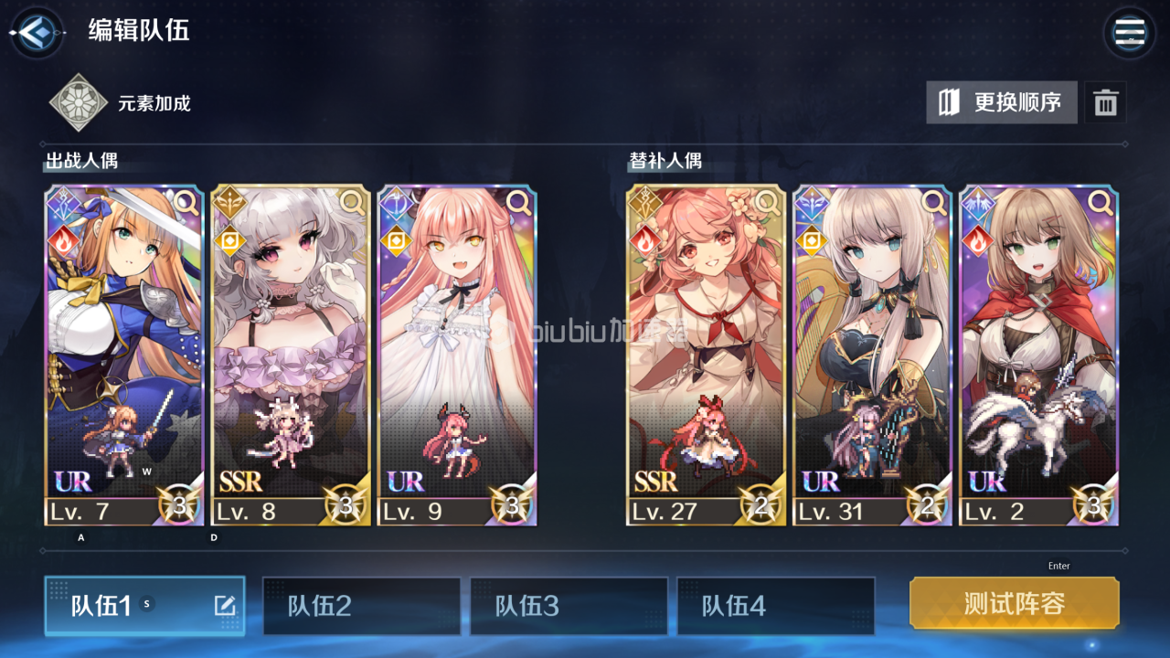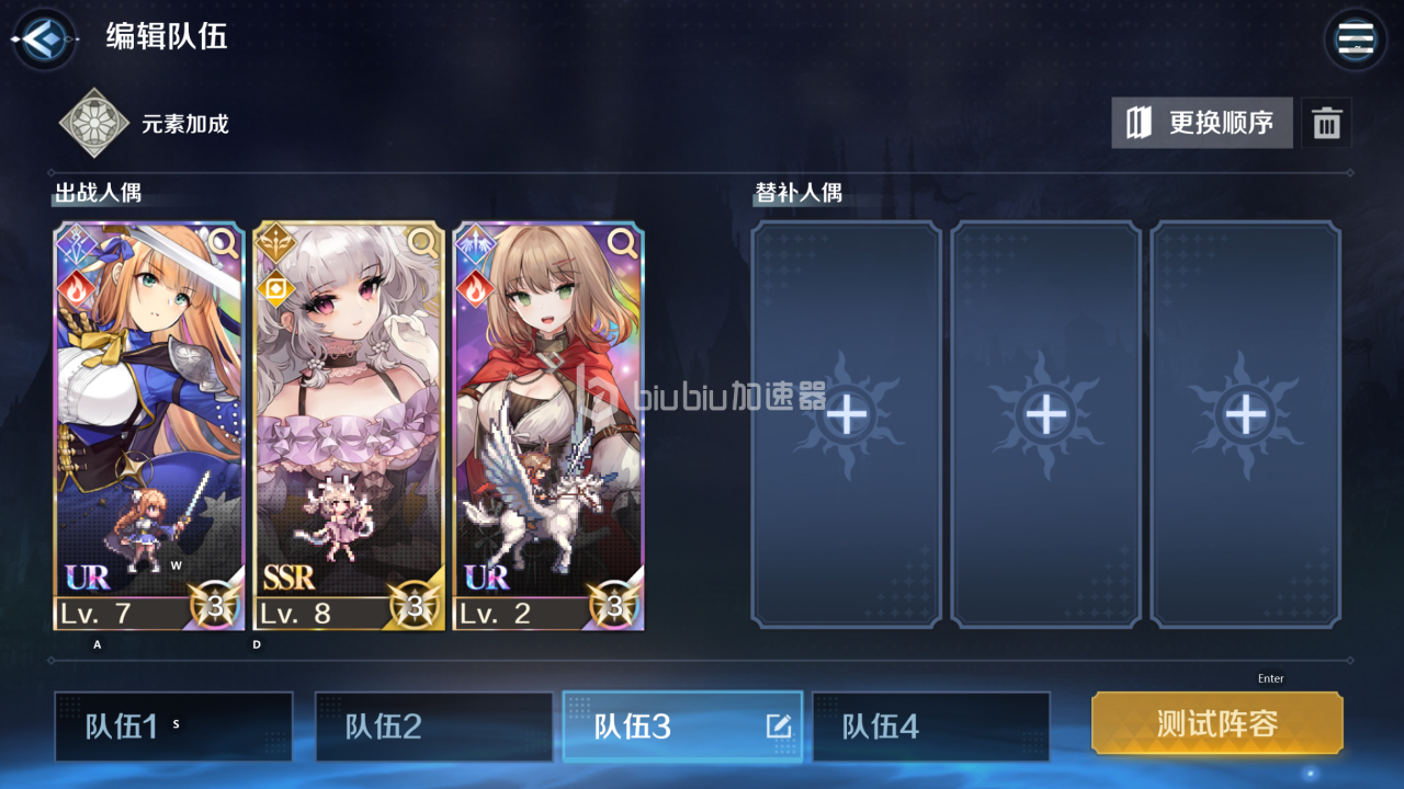 其次我们来说一下前排位,这里小编给出了三位人偶,分别是凯忒丝、天马和龙女。如果是平民玩家的话可以上凯忒丝直接将阵容组好,但是后期的话凯忒丝不是很强,所以小伙伴们要做好换人的准备。龙女比较适合微氪玩家,买一个螺旋梦境升到5级就会送大家一个龙女,但是这个人偶也有缺陷,那就是坦度不是很够。用天马是最好的选择,但天马比较难抽,小伙伴们想拥有的话只能看脸了。