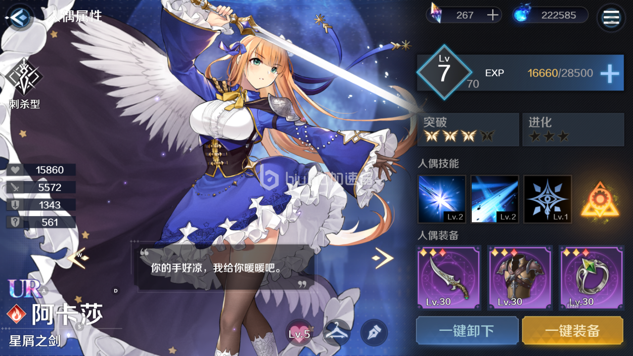 首先各位小伙伴们需要了解一下剑圣,剑圣的名字叫做阿卡莎,这名人偶的所有分析小编已经整理过了,小伙伴们可以翻一下小编之前的攻略,里面有非常详细的讲解。在目前的版本中阿卡莎的队伍非常固定,后排是阿卡莎,中排是奶妈,前排是一个带有穿甲的坦克或者战士,所以小编这里有几种队伍供大家选择,请各位小伙伴们根据自己的实际情况进行组队。