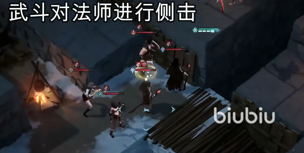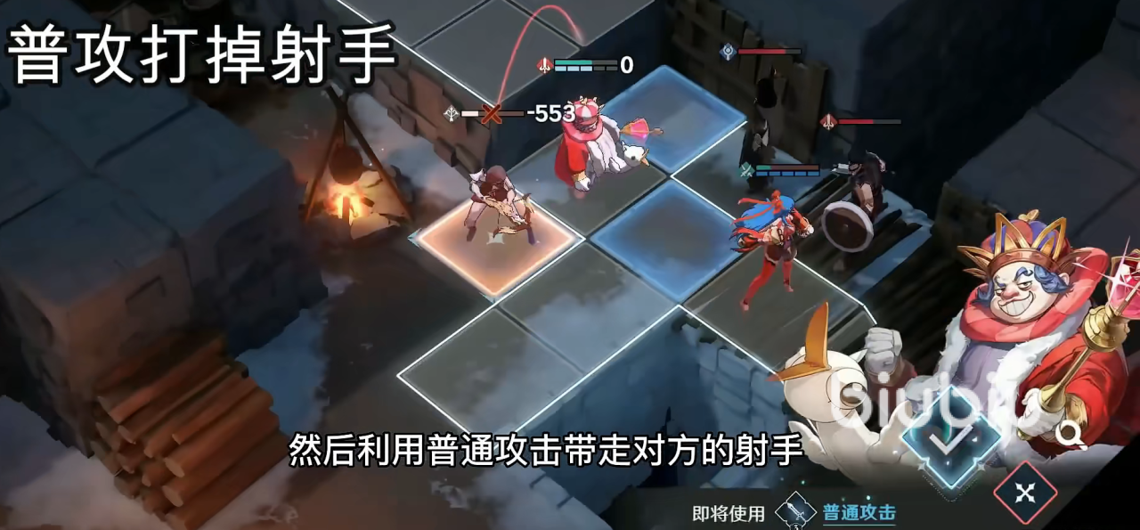 玩家在开局的时候需要操控射手走位释放技能攻击敌方单位中间那个法师,在触发眩晕控制效果之后己方武斗角色需要下去到侧面去进行攻击,然后先锋在这个时候需要上前去对敌方射手单位进行正面伤害打出压制效果。敌方回合的时候对己方造成伤害的同时会有一定的几率可以进行反击。