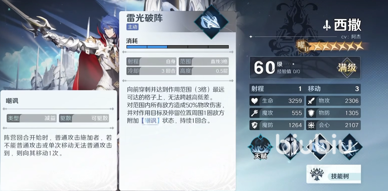 该技能的机制让它在战斗中可以打出群体伤害,也可以当做位移技能使用,而且该技能在攻击敌方后不会触发反击效果,该技能在西撒升星之后还会自带嘲讽效果,非常适合西撒的反伤机制。