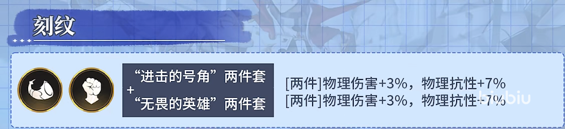 刻纹推荐:【无畏】两件套、【进击的号角】两件套、【天空主宰】两件套,玩家可以在这三组中根据自己当前的实际需求进行搭配组合使用。