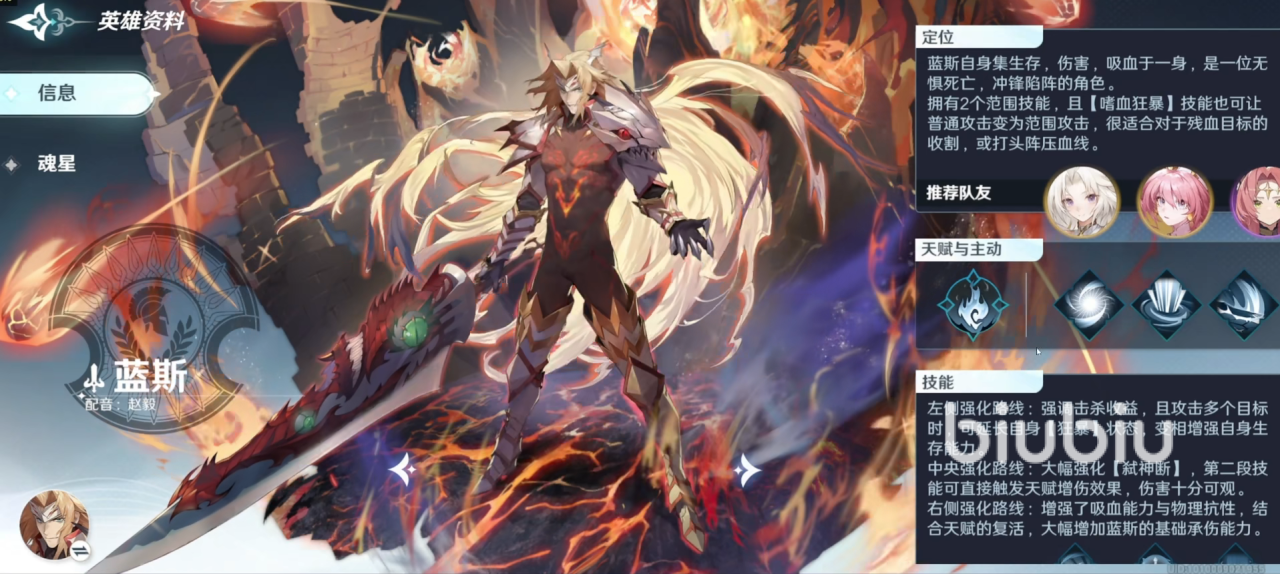凯琳与蓝斯同时上场在同一个队伍中的时候会触发【誓言重锤】这一技能,当蓝斯在进行攻击伤害的时候,对方目标进行反击之前凯琳会再次对其造成补刀伤害。