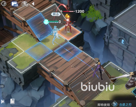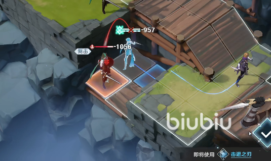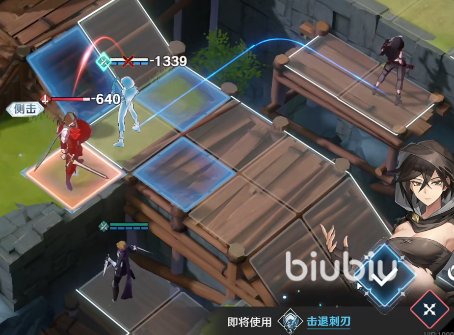 2、第二回合就轮到黄发女了,也是使用击退之刃移位到敌人侧面,对她进行击退,操作如上图所示。