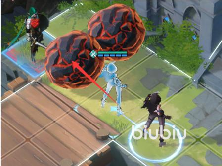 7、然后再兜帽女移位到敌人旁边,使用击退之刃将敌人推到滚石的路径上。