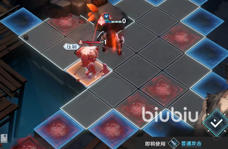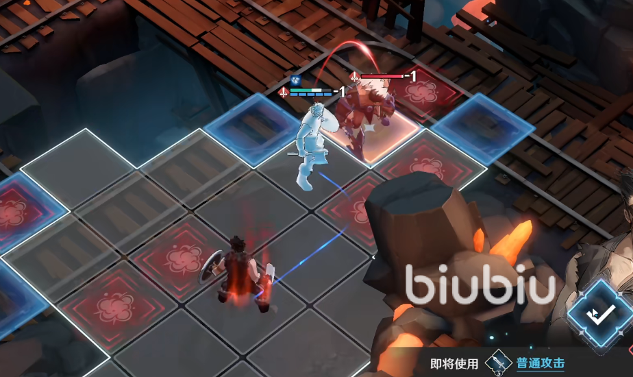5、接下来就轮到我们的回合,我们需要将矿工移动到上图所示的位置,再点击魔兽进行普通攻击。主动进行普通攻击后,也会造成击退的效果,让魔兽后退一步到陷阱当中。
