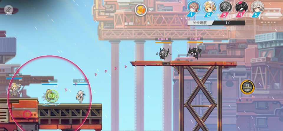 这时候我们再拉动弹射会发现弹道不好再进行地形的破坏,如果想让第二个怪物掉下去存在很大的不确定性,此时就要告诉大家,不要再执着对地形的破坏了,其实将弹道向上可以直接攻打它们,而且梦的攻击是两段的,可以直接完成一波二连杀哦。