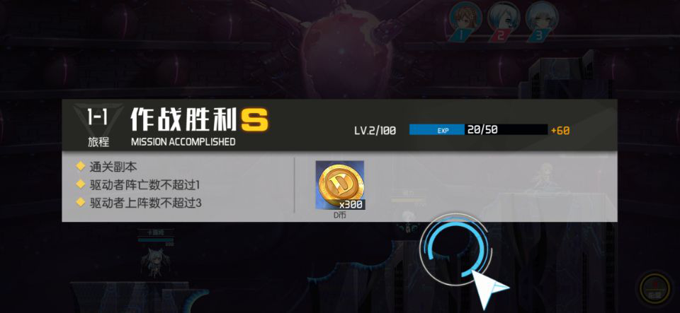一次命中后可能怪物还是会有剩余的血量,不过两个角色合力配合就可以轻松将对面击杀了。作战胜利后会获得经验和金币的奖励,根据达成的条件获得星级,通关肯定会有一星的保底,且这一关我们也只能上场两名角色,大家要注意的是保证两名人物没有伤亡哦,有失误的情况下不要慌张,保证在少量失误下完成。