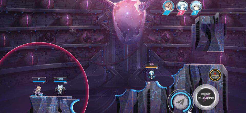 第一关在轮到我们出手时系统会有提示,出现我方出手的字样后,我们就要认真观看游方角色了,可以观察到第一个先手的任务周围有红色的圆圈,表示可以蓄力进行攻击,我们拉住人物往后蓄力,根据弹道来打击对面的黄色血条的小怪,注意地面也是可以打烂的哦。