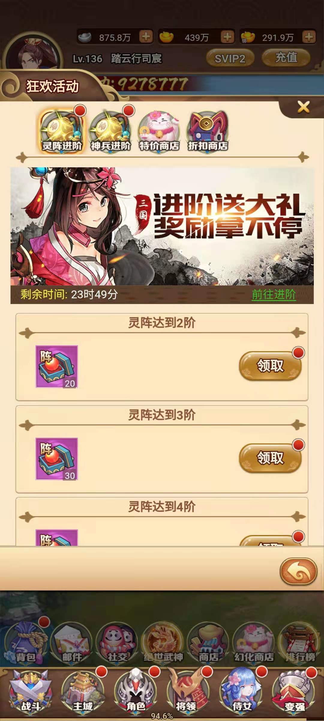 2021年05月12日 11:43 来源:番茄飞升三国之一款三国历史的超爽体验手游,玩家在游戏中不充值就能体验到高级VIP的感觉,小编今天来给大家讲讲飞升三国怎么快速升级。等级在飞升三国中占据非常重要的地位,很多活动都需要等级到了才能开展,强力的道具也需要等级来解锁。