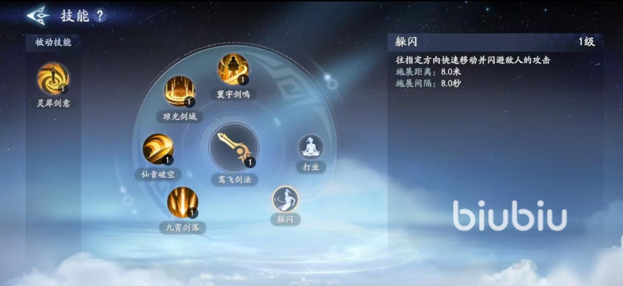 这个角色他的技能有五种,第一个是九霄剑落在敌人的位置落下剑雨会造成多次的伤害。第二个是仙音破空,可以快速的凝聚剑气,对于生前直线路径上的敌人可以造成伤害。第三个是琼光剑域,可以在敌人位置升起剑域对于区域内的敌人造成伤害,并降低其移速攻速。第四个是寰宇剑鸣,在浮空数秒当中可以去引导飞剑,对于指定的敌人造成多次伤害,而且浮空期间可以进行免疫控制效果。第五个是灵犀剑意,若是属于被动技能,当每次普攻命中有几率触发三把飞剑,对于目标造成伤害,所以他的每次普攻与技能命中都会为自身叠加基础攻击力。
