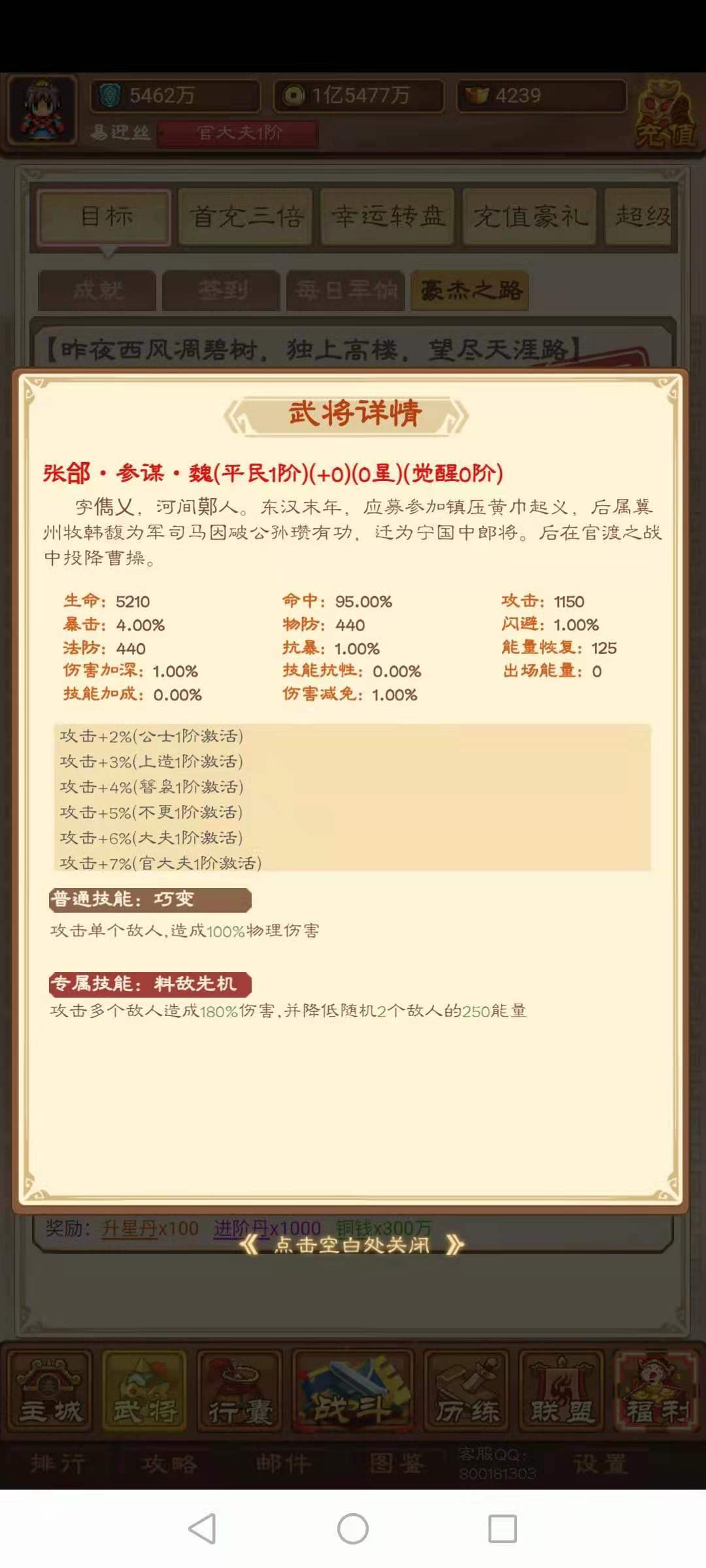 活动奖励也是红色武将的一大来源,在超级特惠中可以兑换到步练师和诸葛亮这两名红色武将,都是出色的属性型武将。在豪杰之路中,第七天签到可以领取到红色武将张合,张合属于参谋型武将,擅长输出和降低敌方的能力,在PK中的作用很大。如果红色武将的数量超过了上阵的数量也没关系,可以在阵法府中上阵,作为队伍的强大助力。