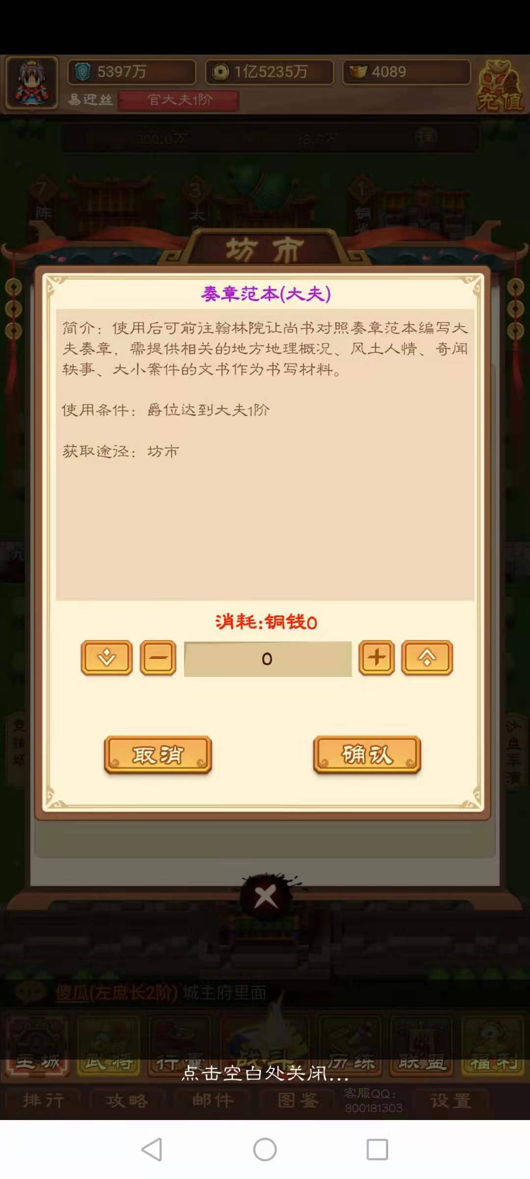 需要注意的是,官阶的晋升是有着失败几率的,越是高阶的官阶晋升,失败的几率就越高,例如从官大夫一阶晋升官大夫3二阶,失败的几率就是50%,如果失败的话,不仅晋级失败,还会损失40%的功名。所以大家在晋升的时候,一定要买一些奏章,在商店中就能购买,每一本奏章都能提升一定的成功率,一般来说使用奏章堆到90%就可以了,没有必要非要堆到100%。