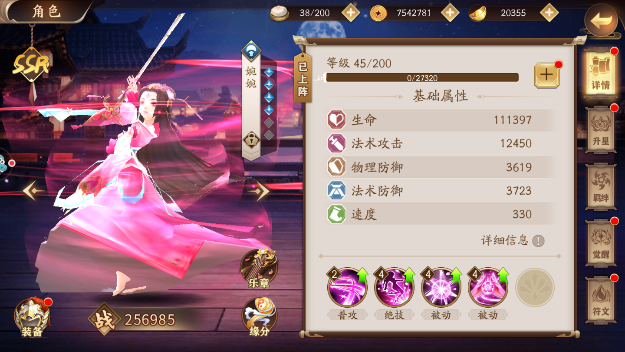 2、角色评价:由于主角是必须上场的,因此是没有不练的理由的。更为重要的一点是,主角占用的资源并不算多,在游戏前其是比大部分SSR要强的,优先强化主角游戏将会更加简单。