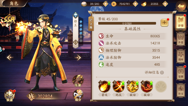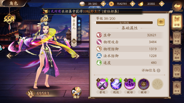 2、角色评价:邪王的输出要高出婉婉一些,同样邪王的获取和进阶难度低,正常发育状态下邪王的攻击力应该是SSR中最高的了,放在后排一点问题没有。