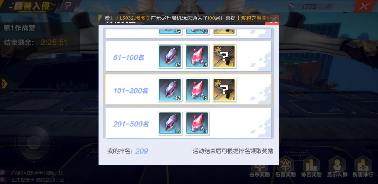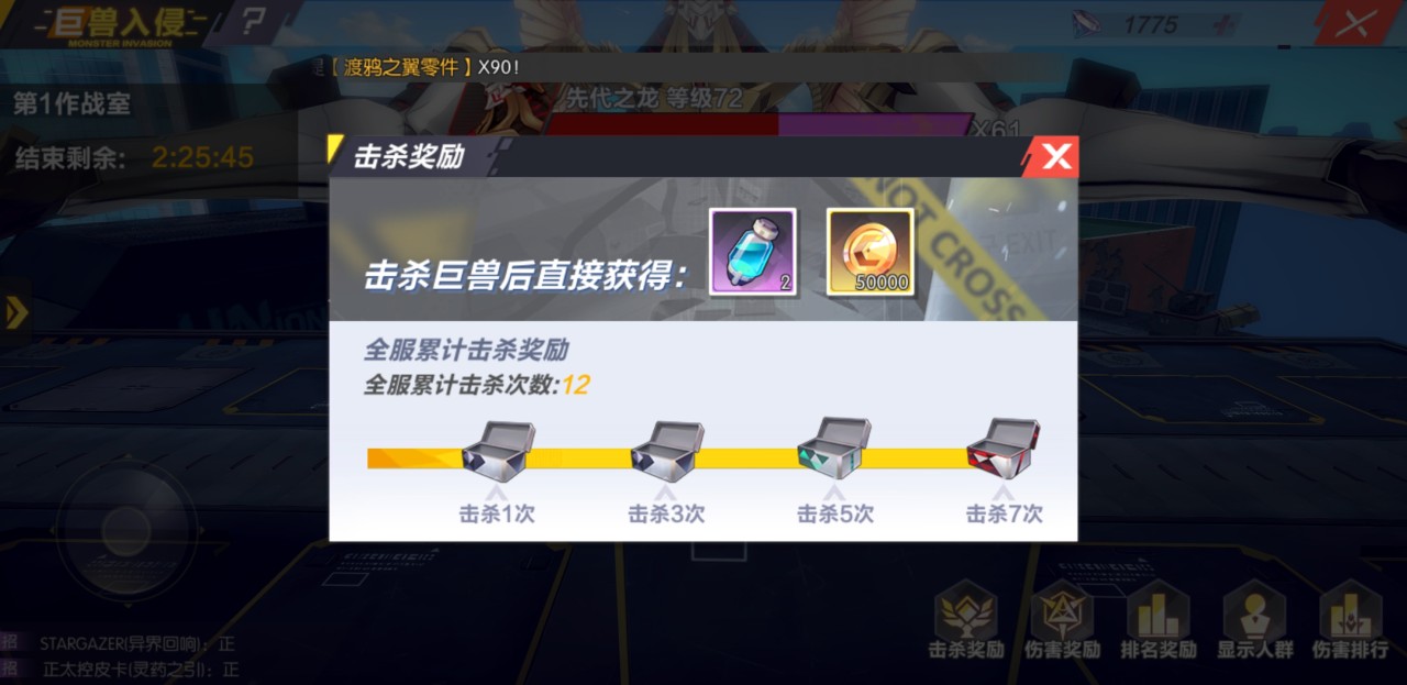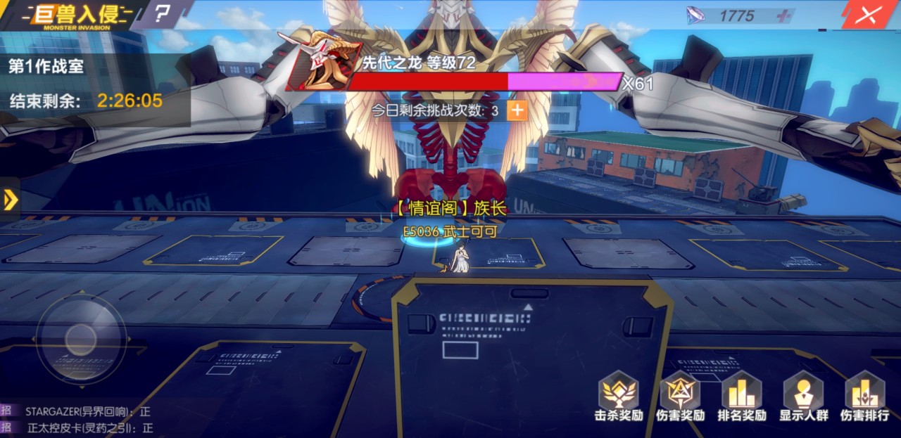 玩家在规定的五分钟内进行攻击,并且玩家也会受到巨兽的攻击,所以玩家一定要小心不要被巨兽打到,巨兽一击可是很疼的,要是玩家可以在五分钟内打出高额伤害并且击杀巨兽那将会获得丰富的奖励。