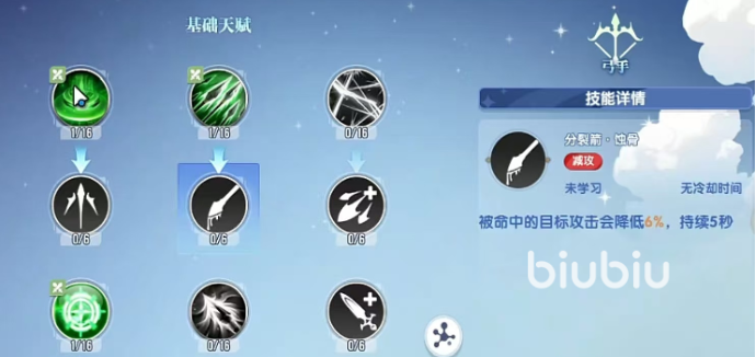 分裂箭能在进行攻击的同时降低敌人的攻击力,淬毒箭可以对范围内的敌人直接形成伤害,还会在原地放出毒素,使敌人受到持续伤害,适合应对一些站桩输出的目标,转职分支有暗影猎手、幻影游侠。
