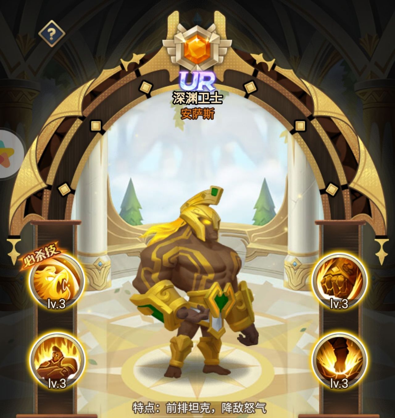 第三个值得培养的不是一个前排肉法师,而是一个可以无敌盾牌的前排肉战士。他是斯克。斯克将对整个敌人造成100%的物理伤害,并将敌人的物理防御减少5%。同时,这个BUFF将持续三轮。。然而,在战斗开始时,它也可以获得1000个愤怒点,这是一个非常好的BUFF。如果敌人的目标是一个防御等级,它将增加当前5%的健康损失。