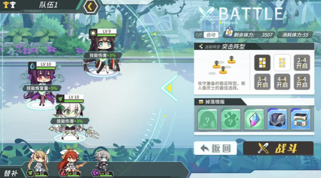 侧翼B阵型的优点在于:有特效追加津贴、本身减伤、技能命中。