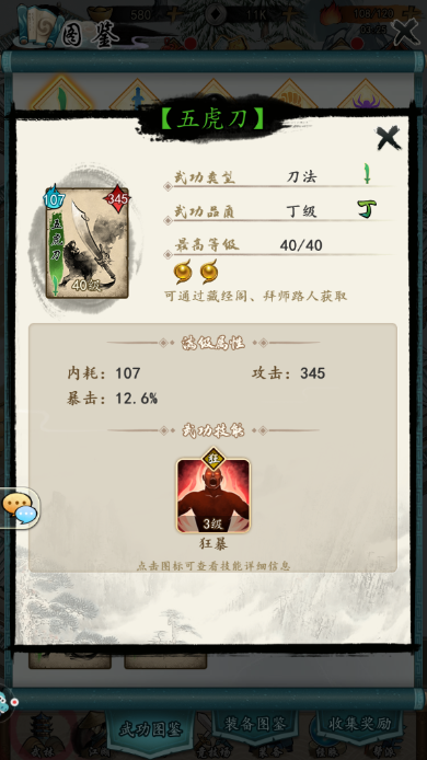 第一套可以配合的剑法为“五虎刀”和“基础剑法”,这两张剑法卡牌在同时使用的时候,可以对敌人造成高额的伤害。五虎刀在使用的过程当中,还会给敌人造成流血效果,配合上基础剑法的暴击。第一回合就可以对敌人造成可观的伤害。