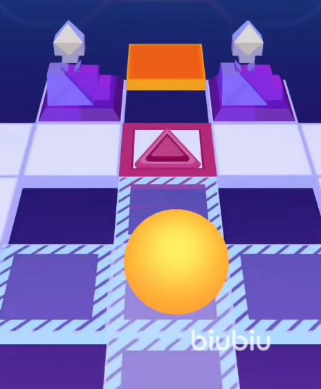 124关卡被称为电玩城。一开始我们前方可落脚的区域有7格,一开始我们可以选择从左边的通道前进,主要是因为左边的通道更加符合我们自身的操作。之后遇到整面的我们便从中间通过,如果是零散空间的我们便可以从右边进行通过。