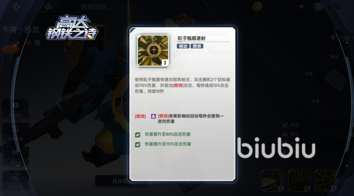 玩家可以在机甲图鉴里筛选有“燃烧”标签的机体,比如说力天使、天帝、百式、乍得、座天使等等,这几台机甲也能进一步强化这个燃烧流体系。当然,前期想要凑够完整一套燃烧流可能没有那么容易,但确保自由+正义这两个基础组合要有。