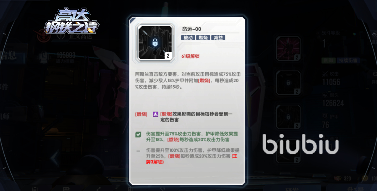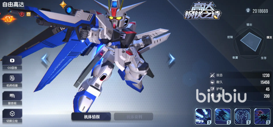 目前燃烧流的绝对核心自然是“自由高达”,它的主动技“全炮门发射”攻击处于燃烧状态下敌人的时候有额外增伤,不过需要研发机体升星解锁。如果顺利击坠目标的话还可以回能100点。