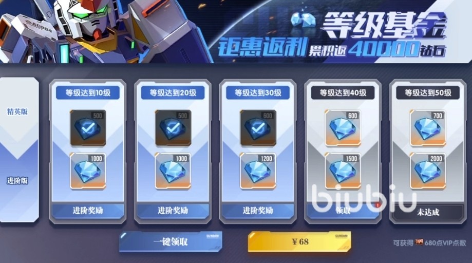 紧接着是超级基金玩法了,这个玩法是基于玩家能接受月卡和每日充值上,能达成这两个那么在这个充值上能得到更加丰厚的回报,为后续的快速提升机甲战斗力做好准备。
