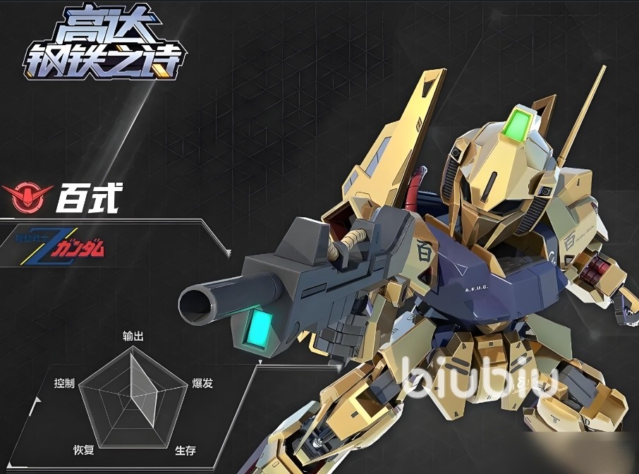 4、百式。这个机甲在装配了【超级米加粒子炮】后能对方全体敌人造成伤害并提升自身的减伤率;【奥古先锋】在解锁后能提升机甲的生存能力和恢复能力。