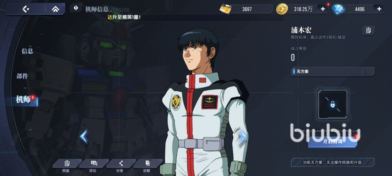 最后一个选项是机师,机师指的就是机体的驾驶者,一般来说高级机体都会有自己专属的机师,机师可以进行属性升级,这样也可以加成到机体的属性中,这也是不容忽视的一个方面。还可以同步转换来获得不同的属性升级,通过选择不同的方案,能够让机体的提升更加精确。