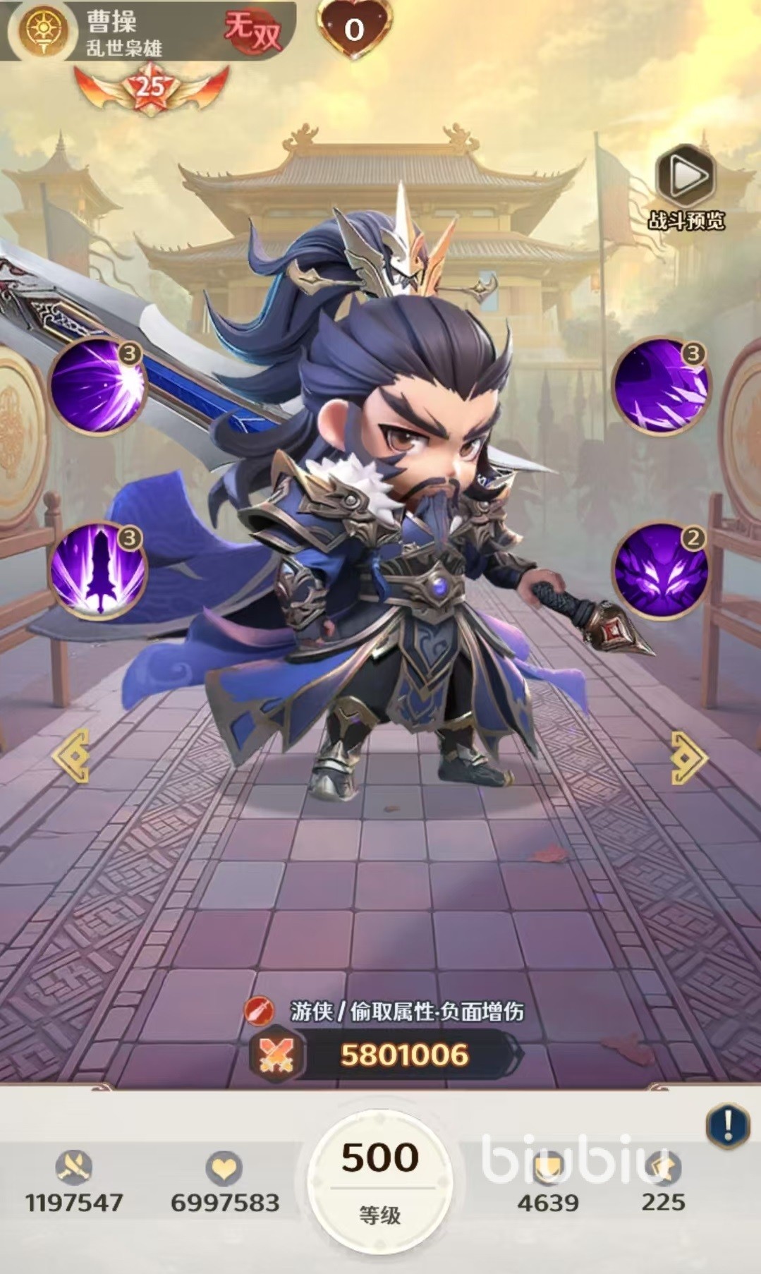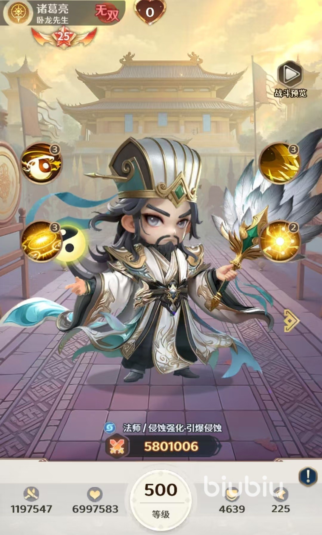 排名第二的是无双曹操,无双曹操也是现在很多阵容搭配过程中的主c,大招具有超高的物理伤害效果,并且会根据敌方身上的负面层数提升伤害倍率。曹操只要和一些能够附加负面状态的队友一起配合起来,场上的输出也非常可观。另外大招还具有偷暴击和偷暴击率的效果,战斗到后期伤害输出更恐怖。曹操的被动可以通过攻击恢复生命值,受到伤害有几率偷取抗爆,既提升了自身能力,又削弱了对方。排名第三的是无双诸葛亮,无双诸葛亮作为群体输出型法师,他的大招可以对全体造成法术伤害,并将目标身上的混沌侵蚀全都触发起来引爆。在被动的加持下,触发混沌侵蚀时还可以给对方最低的目标恢复生命值。这样既有爆发能力,又有一定的团队治疗能力。