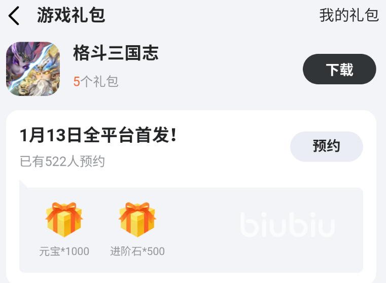 关于格斗三国志礼包领取方法就给大家分享在上面了,认准九游是没错了,大家照着上面的方法去下载九游app,趁着现在礼包剩余量还有很多,抓紧时间去预下载并领取礼包,等13号开服了第一时间去开荒冲榜,这样也能领先其他玩家。