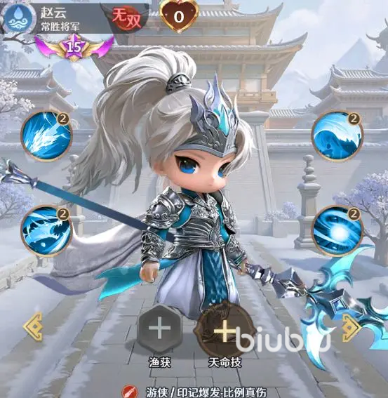 这是水系武将,善于通过叠加印记,最终爆发出真实伤害。1技能主要对一行敌方展开攻击,敌人受到144%物理伤害,并对敌人添加“冰魄镇魂”效果,对手身上每多一层这个效果,伤害就增强10%,累积3层直接全部消耗,敌方受到10%血量最大伤害。2技能是群体进攻技能,敌方所有单位受到144%法术伤害,也主动添加上述层数。这是个爆发能力比较突出的角色,且兼顾了法伤和物伤,是个全面型的输出武将。