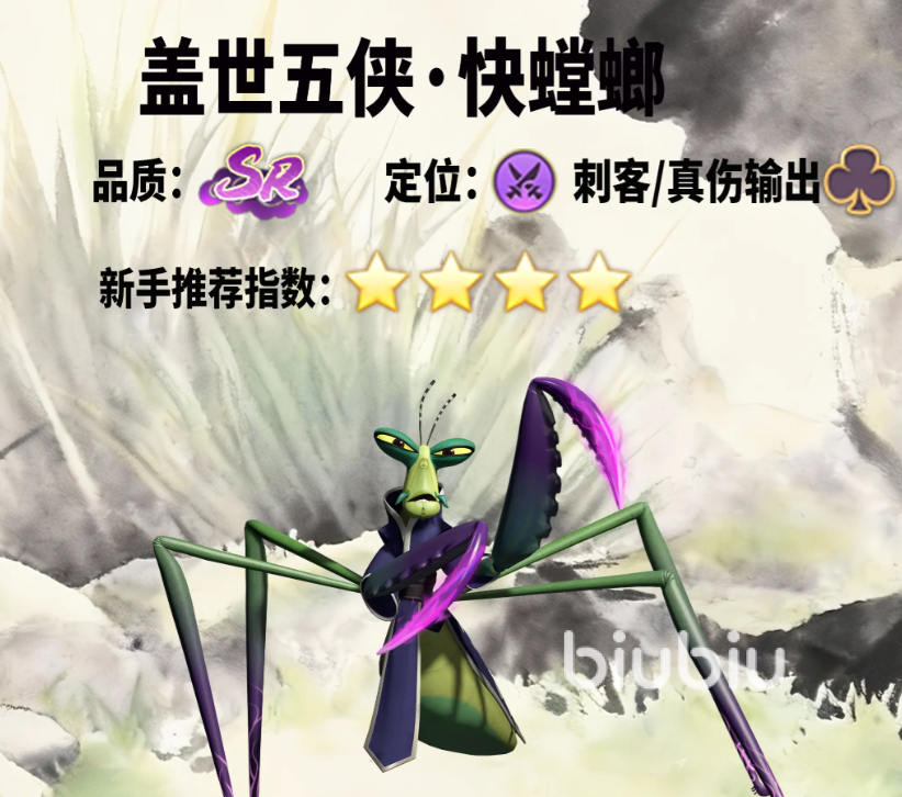 让五侠螳螂可以作为推进副本的关键角色,来通过可怕的真实伤害,有效克制敌方的高威胁目标,为队伍赢得胜利,并且最后这5位还能凑齐3激励2铁壁的羁绊,让队伍整体坦度与输出兼备,开局就能迅速获取怒气,来流畅推关。
