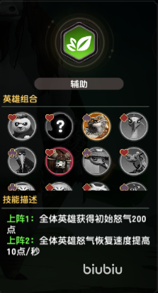 2辅助:全体英雄怒气恢复速度提高10点/秒