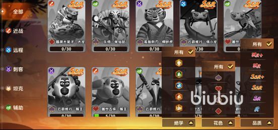 1.英雄品质:R、SR、SSR、SSR+、UR、UR+