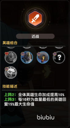 2近战:全体英雄生命加成+10%