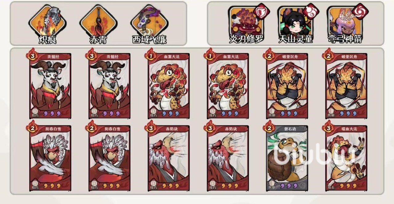 在装备方面选择炽灵四件套加上卧龙之袍,四件套的效果是治疗加成20%,战斗首次获得四张灼烧牌后恢复2点真气,抽两张牌。除了自残留之外,还可以走火系爆发流,搭配的选择是天道剑圣和圣僧,用灵童的减怒和增伤,放大灼烧以及真气技能循环,提升自动pve过程中的效率。但是这种流派在强度方面不如自残,依然推荐大家走自残流。